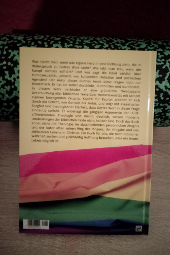 Hier eine Buchempfehlung zum Thema Homosexualität, was die Bibel sagt und was nicht.